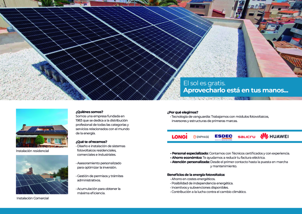 En GRUP SUEPRAT somos especialistas en instalaciones solares fotovoltaicas para hogares y empresas. Con más de 40 años de experiencia en el sector eléctrico, te ayudamos a transformar tu energía con soluciones sostenibles, eficientes y adaptadas a tus necesidades.